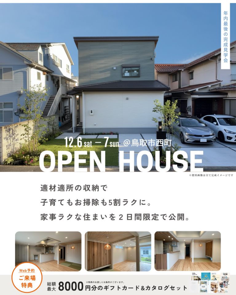 2025年最後の完成見学会|収納計画・家事ラクの子育て世帯の家|鳥取市西町